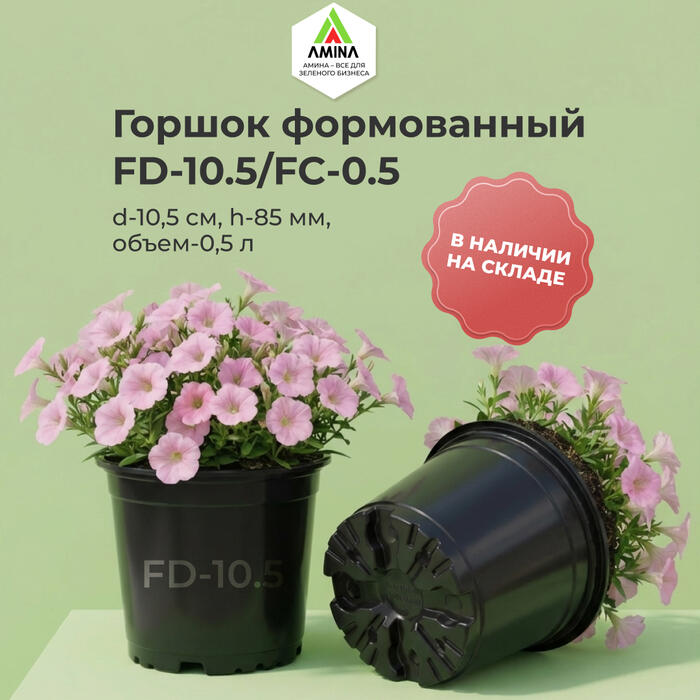 Компания Amina Sauda объявляет о масштабном пополнении складских запасов! Одна из самых популярных моделей в нашем ассортименте — формованный технологический горшок FD-10.5/FC-0.5.