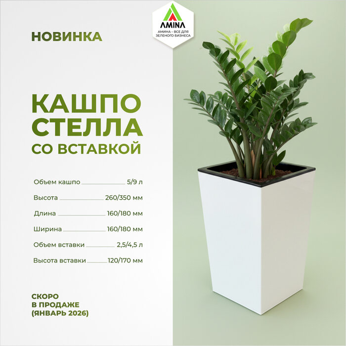 Компания Amina Sauda рада анонсировать запуск производства инновационного кашпо для цветов со стильной вставкой "Стелла" уже в январе 2026 года. Эта новинка сочетает в себе функциональность и современный дизайн, станет отличным решением для оформления вашего интерьера и сада.